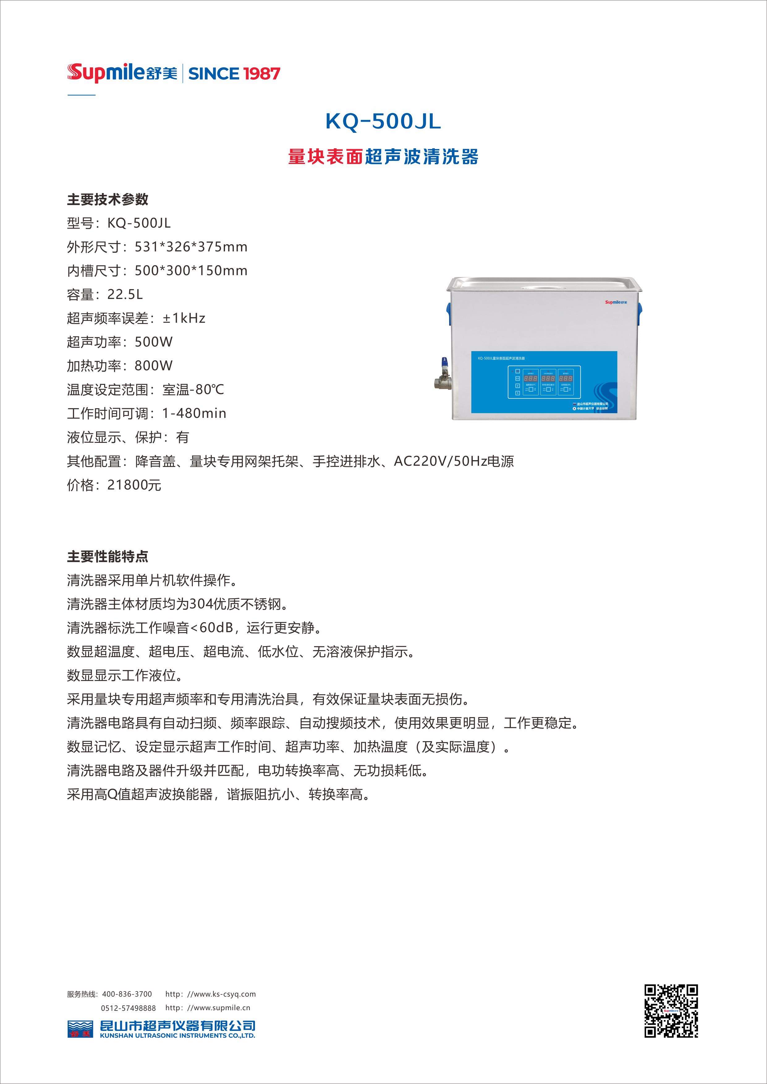 KQ-S500JL型量塊表面全自動超聲波清洗器榮獲“中國儀器儀表學(xué)會科學(xué)技術(shù)進(jìn)步獎二等獎”,擁有數(shù)項技術(shù)專利、產(chǎn)品專利,填補(bǔ)了量塊清洗行業(yè)使用超聲清洗的空白,是量塊清洗行業(yè)的新理念、新方法、新起點!