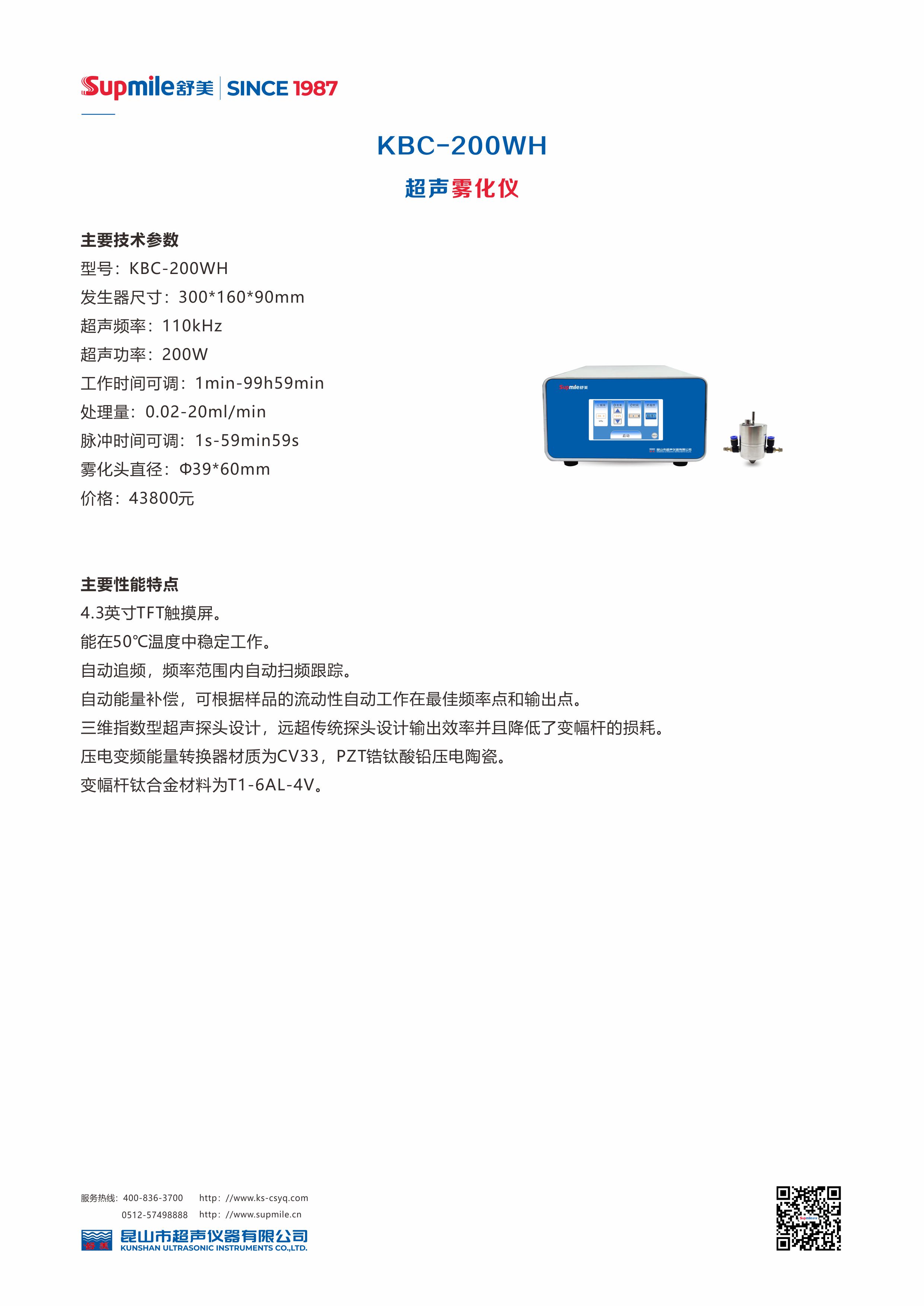 1、技術優(yōu)勢:超聲波高頻霧化設備,本品采用微孔霧化,頻率涵蓋45KHz低頻段及110KHz高頻段,霧化粒徑細微,粒徑可達2-10um;三維指數(shù)型超聲探頭設計,具有自動追頻、自動能量補償功能。